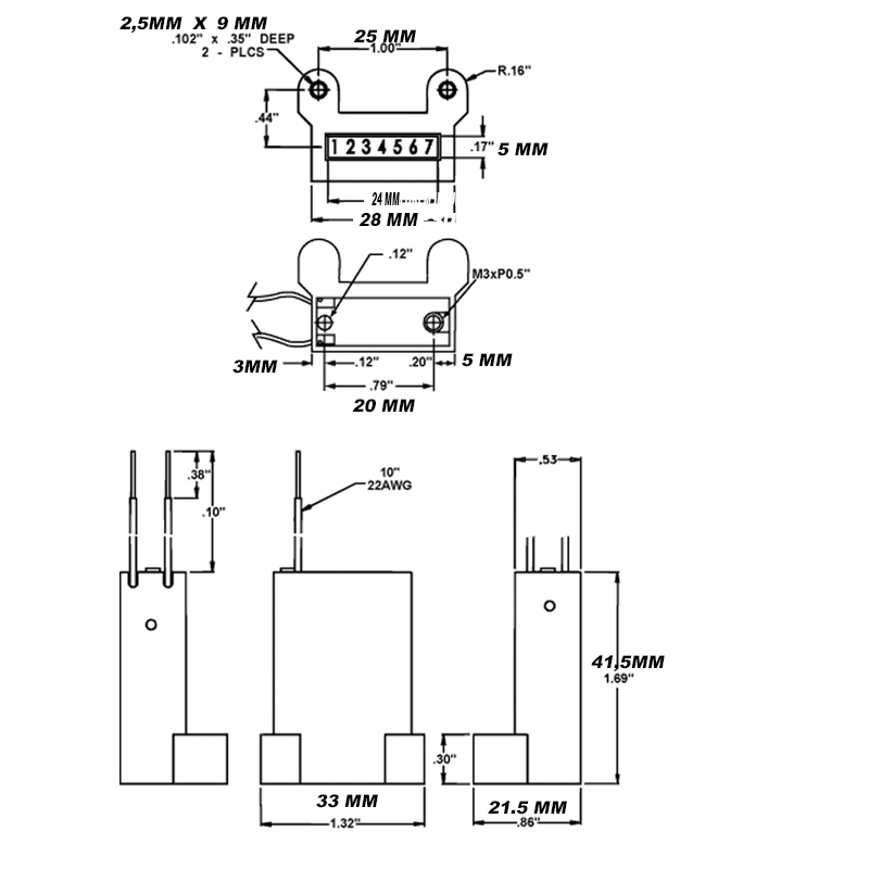 Elektromechanisches Zählwerk 7 stellig 24VDC mit Diode